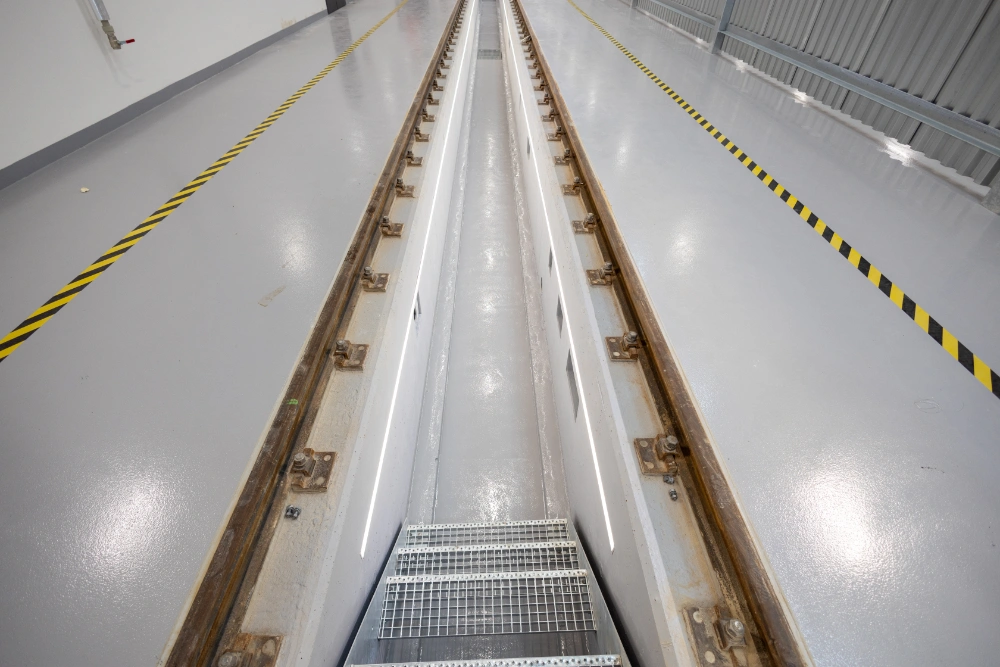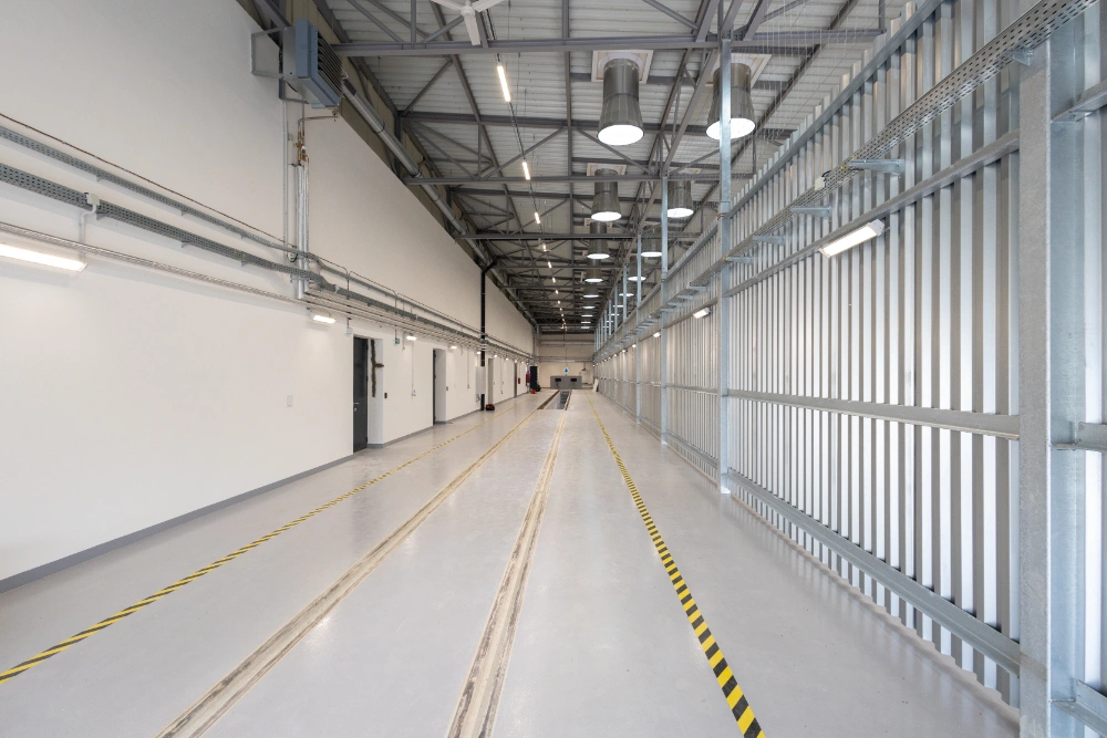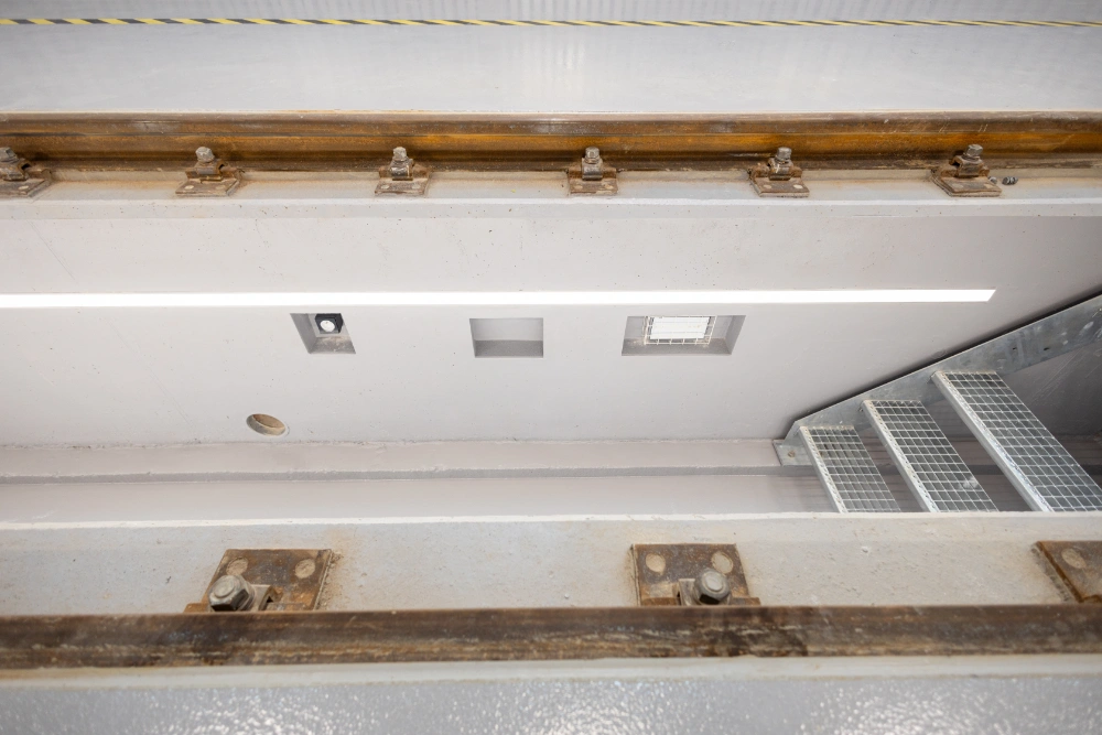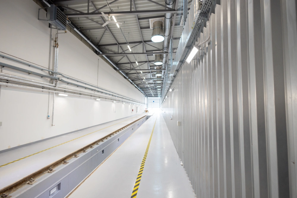 Výstavba nové haly pro kolejové vozy Oprav trakčního vedení a správy trati včetně zázemí a kanceláří.